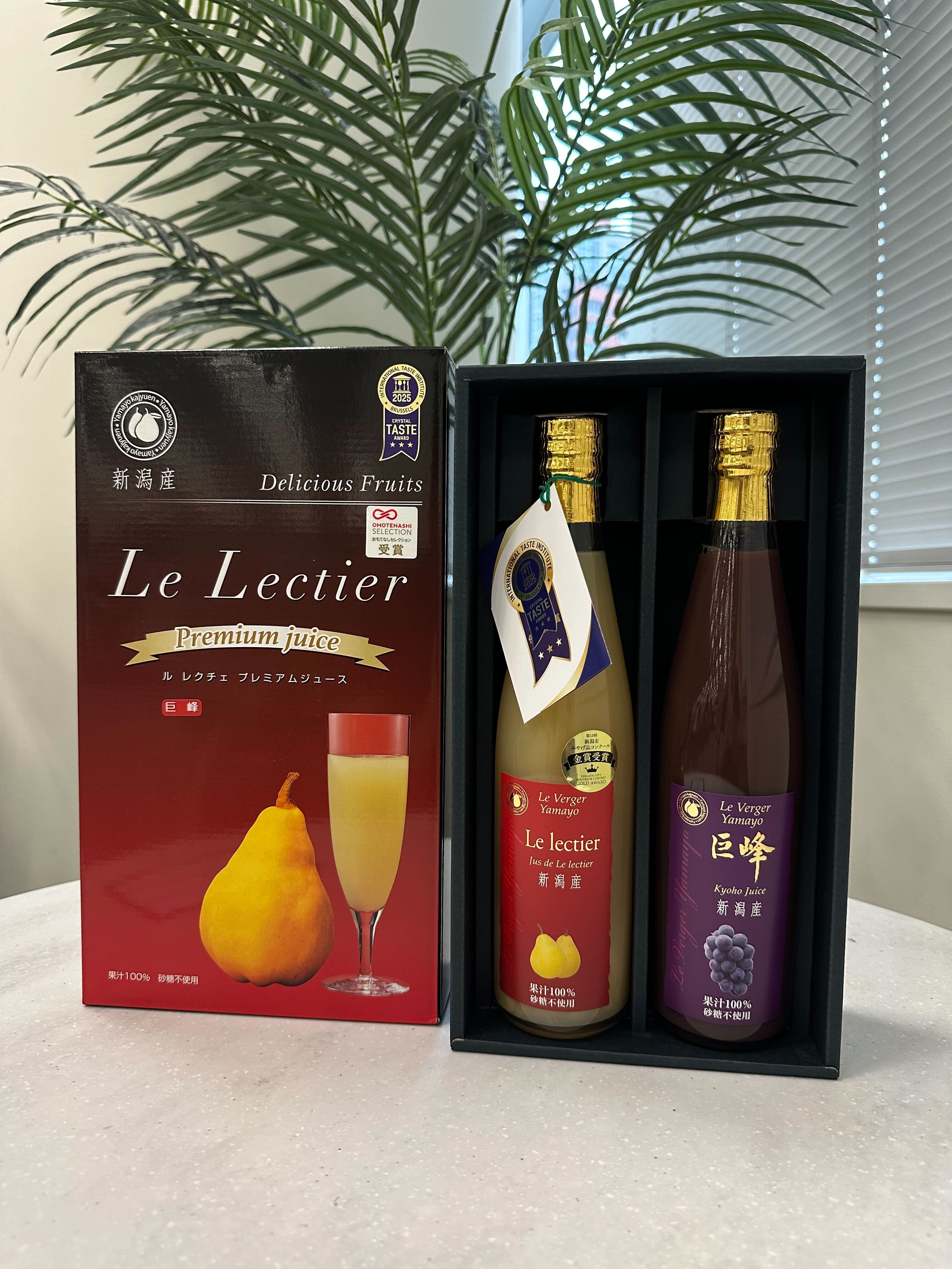 • 內容量:500ml × 2瓶(巨峰葡萄汁1瓶 + Le Lectier西洋梨汁1瓶)】